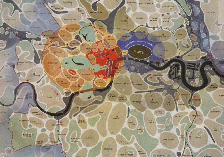 A new idea of ‘London as a machine’ involved wholesale demolition of ‘obsolescent property’ in the working class south and east of London, dispersal of the people and construction of high-rise flats while leaving the posher north and west alone.