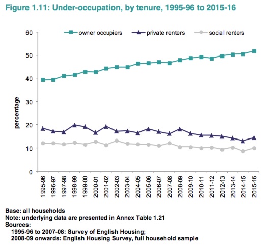 More than half of owner-occupiers under-occupy on this measure compared to just 10% of social renters, a proportion that actually rose slightly last year.
