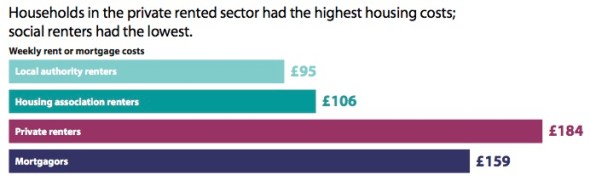 However, average weekly private rents (£184) were not just higher than social rents but also average mortgage costs (£159).