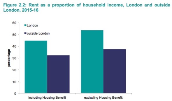 Unsurprisingly, affordability is worst for private renters in London, where average rents take up 45% of incomes.