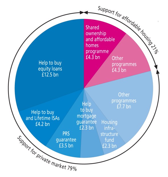 What really leapt off the page at me in this chart was that the government is set to spend £4.2 bn on Help to Buy and Lifetime Individual Savings Accounts (ISAs) over the same period as it spends £4.3 bn on the main Shared Ownership and Affordable Homes programme.