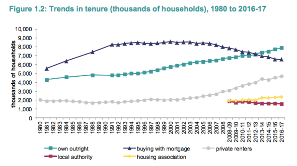 Figures in the 2016/17 English Housing Survey published on Thursday show yet another rise in the proportion of households renting from a private landlord and decline in home ownership.