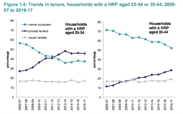Figures in the 2016/17 English Housing Survey published on Thursday show yet another rise in the proportion of households renting from a private landlord and decline in home ownership.